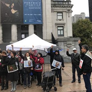بعدازظهر روز شنبه ۲۱ اکتبر، بدنبال فراخوان کمیته “کارزار دفاع از کارگران و زندانیان سیاسی در ایران” که متشکل از نیروهای سیاسی چپ و فعالین و مدافعین کارگری بود، اکسیونی در حمایت از رضا شهابی و دیگر کارگران دربند، در مرکز شهر ونکوور زیر رگباری از باران تند برگزار گردید. در این برنامه حاضرین ضمن دادن شعارهایی علیه رژیم جمهوری اسلامی ایران و حمل پوسترهایی از رضا شهابی و دیگر کارگران، معلمین و زندانیان سیاسی دربند، خواستار آزادی بی قید شرط کارگران در بند و همه زندانیان سیاسی از زندانهای نظام جنایتکار حاکم بر ایران گشتند.
