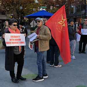 روز شنبه ۱۳ اکتبر کارزار دفاع از جنبش انقلابی مردم ایران که متشکل از فعالین سازمانها، احزاب و نیروهای چپ و کمونیست میباشد، اکسیونی در حمایت از اعتصاب سراسری رانندگان کامیون و نیز در پشتیبانی از تحصن سراسری معلمین ایران، در مرکز شهر ونکوور برگزار نمودند. در این اکسیون ابتدا چند موزیک انقلابی پخش شد و سپس بیانیه کارزار در حمایت از اعتصاب و تحصن سراسری و دفاع از کلیه مطالبات رانندگان کامیون و معلمان خوانده شد. در این بیانیه، رژیم جمهوری اسلامی عامل اصلی بدبختی در جامعه و زندگی فلاکتبار زحمتکشان ایران دانسته شده و برای برون رفت از این شرایط ناعادلانه و زندگی غیر انسانی در نظام حاکم در ایران تاکید شده راهی جز سرنگونی این رژیم جنایتکار با یک اعتصاب سراسری و قیام انقلابی وجود ندارد.