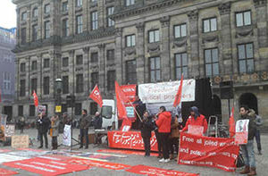 روز شنبه، ۲۴ نوامبر، آکسیونی در حمایت از کارگران هفتتپه و مبارزات کارگران و در اعتراض به دستگیری و زندان فعالین کارگری و معلمین از ساعت ۱۳ تا ۱۴ در محل میدان دام شهر آمستردام در هلند برگزار شد. این آکسیون توسط “کمیته حمایت از خیزش مردمی و مبارزات کارگران” که فعالین سازمان در هلند در این کمیته همکاری دارند، برگزار شد. فعالین سازمان با دادن فراخوان فعالانه در این آکسیون شرکت داشتند. این آکسیون با شرکت سازمانها و احزاب و نیروهای مستقل چپ و کمونیست برگزار شد. فعالین سازمان با پلاکارد و شعارهای سیاسی، آرم و پرچم سازمان در این برنامه شرکت داشتند و ضمن پخش اطلاعیه و اطلاعیه سازمان در مورد اعتصاب کارگران هفت تپه و کارگران بازداشتی را خواندند. پخش موزیک در محل اکسیون توجه مردم حاضر در محل را جلب میکرد.
