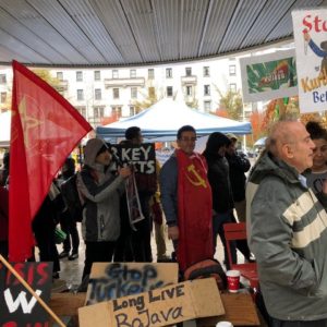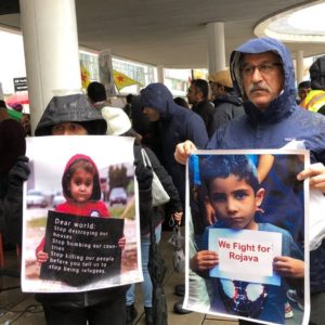 در راستای فراخوان خانه کرد در ونکوور، روز یکشنبه ۲۰ اکتبر اکسیونی اعتراضی علیه حمله نظامی دولت فاشیست ترکیه به مناطق کردنشین سوریه و نیز در حمایت از روژاوا در مرکز شهر ونکوور برگزار شد. کارزار دفاع از مبارزات مردم ایران در ونکوور ضمن شرکت در این اکسیون، یک سخنران برای این روز معرفی نمود. در این حرکت اعتراضی چند سخنران از ملیتهای مختلف شرکت داشتند. آنها ضمن حمایت از حق انسانی کردهای سوریه و منطقه، مخالفت و اعتراض شدید خود را نسبت به حمله نظامی ترکیه به روژاوا و شمال سوریه ابراز داشتند. در این اکسیون اعتراضی، که در انتها به راهپیمایی در چند خیابان مرکز شهر ادامه یافت، شرکتکنندگان، شعارهایی علیه دولت ترکیه، انزجار خود را نسبت به تبانی و همکاری آمریکا در زمینهسازی کشتار و بمباران مناطق کردنشین شمال سوریه توسط اردوغان فاشیست و شعارهای ضد ناتو ابراز میداشتند. فعالین سازمان در شهر ونکوور ضمن حمل پوستر، پرچم سازمان و پخش وسیع اطلاعیه کمیته خارج، فعالانه در این اکسیون و راهپیمایی شرکت داشتند.