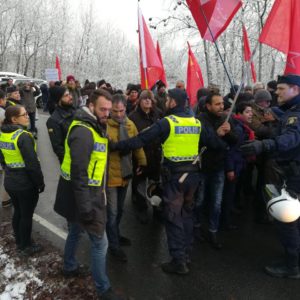 در این اکسیون که با حضور گروه کثیری از فعالین سازمانهای چپ و کمونیست و فعالین منفرد شکل گرفت، علاوه بر شعارهای حمایتی در آزادی بازداشتشدگان قیام آبان ماه، شعارهای دیگری نیز به زبان سوئدی و فارسی در محکومیت جمهوری اسلامی و محکومیت پلیس سوئد در دفاع عملی از جمهوری اسلامی و جلوگیری از نزدیک شدن معترضین به محدوده سفارت (لانه جاسوسی) جمهوری اسلامی سر داده شد، شعارهایی از قبیل «مرگ بر جمهوری اسلامی»، جمهوری اسلامی مرگت فرارسیده»، «کارگر معلم زحمتکش، اتحاد اتحاد علیه سرمایهدار» «پلیس از قاتلان حمایت نکن!»، «سفارت جمهوری اسلامی، مرکز تروریستها» به زبان سوئدی و….. داده شد، در این اکسیون همچنین نمایندگان سازمانهای شرکتکننده از جمله سازمان فدائیان اقلیت و نیز تنی چند از فعالین منفرد سخنرانی کردند