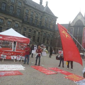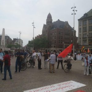 برابر فراخوان کمیته حمایت از مبارزات کارگران و زحمتکشان ایران در هلند و فراخوان حمایتی فعالین سازمان فدائیان (اقلیت) در هلند، تجمع اعتراضی علیه احکام جوانان زندانی قیام آبان ماه ۱۴۹۸ و سایر بازداشت شدگان و زندانیان سیاسی در ۱۸ یولی( جولای) از ساعت ۱۵ تا ۱۷ در محل میدان آمستردام برگزار شد. نصب چادر و پلاکارد کشته شدگان قیام آبانماه و عکس از امیر حسین مرادی، سعید تمجیدی و محمد رجبی و شعار علیه جمهوری اسلامی و پخش موزیک و ترانه سرود مورد توجه مراجعین قرار گرفت. ایرانیان زیادی در این تجمع اعتراضی شرکت داشتند. بیانیه کمیته بزبان هلندی و انگلیسی در محکومیت صدور احکام اعدام خوانده شد. فعالین سازمان اطلاعیه کمیته خارج در رابطه با محکومیت صدور احکام اعدام را بزبان انگلیسی پخش کردند.