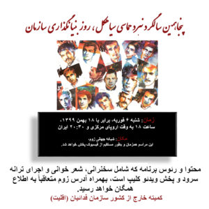 محتوا و رئوس برنامه که شامل سخنرانی، شعر خوانی و اجرای ترانه سرود و پخش ویدئو کلیپ است، بهمراه آدرس زوم متعاقباً به اطلاع همگان خواهد رسید.