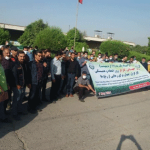 حقوق نصف و نیمه دزدی به سبک بیمه ، تامین اجتماعی چه اسم اشتباهی، پول های نفت کجا رفت به جیب زالوها رفت، زن و مرد کارگر متحد وهم سنگر، سرمایه از روز ازل نبوده سرمایهدار حق ما را ربوده، از جمله شعارهای این روز بود.