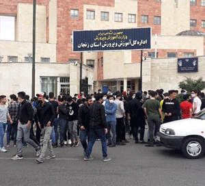 ۱۳ اردیبهشت دانشآموزان پایه ۱۲ و ۹ در اعتراض به اعلام حضوری بودن امتحانات در شهرهای مختلف از جمله یزد، فولاد شهر اصفهان، قزوین، کرج، گلپایگان، زنجان، بروجرد، خرمآباد، شیراز، بیرجند، تبریز، سمنان، ممسنی، اردبیل و شهرکرد به صورتی هماهنگ در برابر ادارات آموزش و پرورش دست به اعتراض زدند. این اعتراض در روز جمعه ۱۸ اردیبهشت نیز در برخی از شهرهای دیگر از جمله ایلام، همدان، کرمان، بندرعباس و نسیم شهر (تهران) در برابر ادارات آموزش و پرورش تکرار شد. “امتحان حضوری، نمیخوایم”، “آموزش مجازی، امتحان حضوری”، “امتحان حضوری با کرونا نمیشه”، “حضوری کفن میخواد! نداریم”، “توپ تانک فشفشه حضوری باید جمع بشه” از جمله شعارهای دانشآموزان بودند. همچنین بازوی سرکوب رژیم در شهرهای قزوین، فولاد شهر و یزد در پاسخ به اعتراضات برحق و مسالمتآمیز دانشآموزان با باتوم و اسپری فلفل به آنها هجوم برده و به اعتراض دانشآموزان وحشیانه پایان دادند. در قزوین و در حالی که دانشآموزان با شعارهای خود به برگزاری امتحانات حضوری اعتراض میکردند، نیروی انتظامی ضمن ضرب و شتم دانشآموزان، بیش از ده تن از آنها را که بین ۱۵ تا ۱۸ سال سن داشتند به محوطه اداره آموزش و پرورش کشانده و تا عصر در محوطه اداره محبوس کردند. این اقدام جنایتکارانهی نیروی انتظامی بدون هیچگونه اعتراضی از سوی مقامات اداره آموزش و پرورش و در واقع با هماهنگی کامل آنها صورت گرفت. در یزد و فولاد شهر نیز نیروی انتظامی با استفاده از باتوم و اسپری فلفل دست به سرکوب دانشآموزان زد. دانشآموزان یزدی نیز در پی تهاجم نیروی انتظامی شعار “نترسید، نترسید ما همه با هم هستیم” سر دادند.