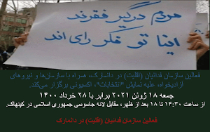 جمعه ۱۸ ژوئن ۲۰۲۱ برابر با ۲۸ خرداد ۱۴۰۰ از ساعت ۱۴:۳۰ ۱۸ بعد از ظهر، مقابل لانه جاسوسی جمهوری اسلامی در کپنهاک.