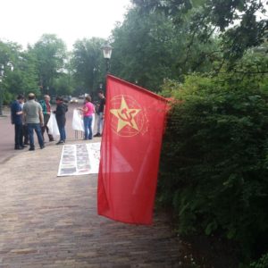 برابر فراخوان بخشی از فعالین چپ انقلابی، رادیکال و آزادیخواه در هلند و فراخوان فعالین سازمان فدائیان (اقلیت) در هلند در حمایت و شرکت در تجمع اعتراضی علیه نمایش ” انتخاباتی” رژیم جنایتکار جمهوری اسلامی در ۱۸ یونی (برابر با ۲۸ خردادماه ۱۴۰۰) در نزدیکی لانه جاسوسی رژیم برگزار شد.
