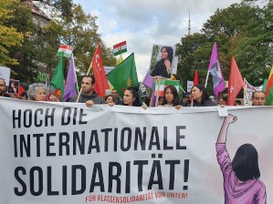 روز ۱۵ ماه اکتبر، یک راهپیمایی سهساعته در حمایت از مبارزات مردم در ایران از طرف رفقای انترناسیونال، فعالین سازمان فدائیان اقلیت هامبورگ، رفقای حزب کمونیست ایران حوزه هامبورگ و شورای فعالین سوسیالیست و آزادیخواه هامبورگ در مناطق کارگری شهر هامبورگ برگزار شد. تعداد شرکتکنندگان در راهپیمایی حدود ۷۰۰ نفر بودند. در این راهپیمایی به ده نفر سلطنتطلب که با پرچم شیر و خورشید آمده بودند اجازه شرکت با پرچم داده نشد و آنها مجبور شدند آکسیون را ترک کنند. این آکسیون به دلیل ترکیب شرکت افراد چپ از امریکای لاتین، ترکیه آلمان و ایران و همچنین محتوای سخنرانیها و شعار و روحیه همبستگی بینالمللی یکی از زیباترین و منظمترین و موفقترین آکسیون بود. راهپیمایی بعد از سه ساعت با خواندن قطعنامه و شعار زندهباد همبستگی بینالمللی خاتمه پیدا کرد.