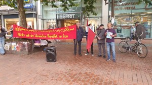 سخنرانانی که از جانب شورا در این آکسیون صحبت کردند هم به فارسی و هم آلمانی، تنها راه نجات مردم ایران و به سرانجام رسیدن مبارزات مردم را سرنگونی انقلابی جمهوری اسلامی و استقرار دولت سوسیالیستی دانستند.