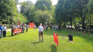 رفقا و شرکتکنندگان همچنین به نقش و جایگاه کشورهای امپریالیستی از جمله آلمان در تأیید سیاستهای سرکوبگرانهٔ جمهوری اسلامی اشارهکرده و آن را در ادامه همان سیاست به وجود آمدن جمهوری اسلامی دانستند. و در آخر ضمن تأکید بر همبستگی با مردم فلسطین، بهپیش بردن مبارزه طبقاتی در سطح جهان را امری ضروری قلمداد کردند.