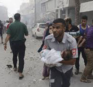 در برابر چشمان بیتفاوت قدرت های بزرگ جهان که تنها به دادن وعده سرگرمند، در غزه کودکان، زنان و دیگر غیرنظامیان بیدفاع هر روز در خون خود میغلطند و بازماندگان خون میگریند. در روزهای گذشته تصویر پدری که کودک ۱۸ ماهه خود را در آغوش گرفته و خون میگرید در رسانهها و شبکههای اجتماعی منتشر گردید، کودکی که دیگر نه صدای بمب را میشنود و نه هق هق پدر را. دیگر غرش تانکها او را هراسان نمیکند، کودکی که کودکی نکرد، کودکی که ارتش و دولتمردان صهیونیست او را به قتل رساندند و چه بسیارند این کودکان و چه بسیارند این تصاویر. در غزهای که ویران شده، در غزهای که هیچ جای آن به اعتراف مقامات سازمان ملل امن نیست. در غزهای که رنج مردمان ستمدیدهاش، آنچنان بزرگ است که نمیتوان به تصویر کشید و قلم از بیان آن قاصر است.