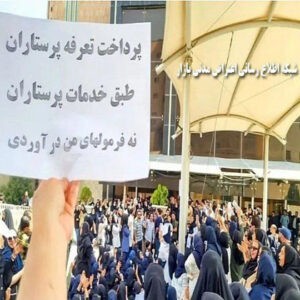 تجمعات اعتراضی و اعتصاب سراسری پرستاران که در شکل نسبتاً گسترده ای مورد حمایت سایر کارگران و زحمتشکان، معلمان، بازنشستگان، و تشکل های گوناگون قرار گرفت و ازحمایت معنوی توده های مردم برخوردار شد، همچنان ادامه یافت. مقامات دولتی با سرو صداهای تبلیغاتی کابینه پزشکیان وعده داده بودند به مشکلات پرستاران رسیدگی کنند.اما بعد از سه هفته اعتصاب، سرانجام کوه موش زایید و یک میلیون و ششصد هزارتومان برای تهیه دو کیلو گوشت آبگوشتی به حساب پرستاران واریز شد. این اقدام تحقیر آمیز – گرچه در هرحال نوعی عقب نشینی دولت است- اما خشم و اعترض بیشتر پرستاران را درپی داشت. روز شنبه ۱۷ شهریور در چندین بیمارستان در شهرهای اصفهان، کاشان و قم تجمعات اعتراضی برگزار شد.