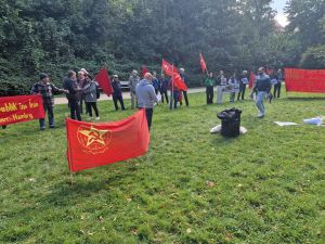 شنبه ۱۴ سپتامبر ۲۰۲۴ آکسیونی اعتراضی برای دومین سالگرد قتل حاکمیتی ژینا در جلوی کنسولگری جمهوری اسلامی برگزار شد. فراخوان دهندگان این آکسیون حزب کمونیست ایران حوزه هامبورگ، شورای فعالین آزادیخواه و سوسیالیست هامبورگ و فعالین سازمان فدائیان (اقلیت) هامبورگ بودند. در این آکسیون رفقایی به زبان آلمانی و فارسی در رابطه با جنبش انقلابی ژینا، موقعیت جمهوری اسلامی، چشماندازهای پیش رو و همچنین اعتصابی که از جانب کومله سازمان کردستانی حزب کمونیست ایران فراخوان دادهشده است، صحبتهایی ایراد کردند. رفقای آلمانی دیگری هم از طرف انجمن زندانیان سیاسی و از جانب تشکل انقلابی در مورد جریانات سلطنتی و نقش امپریالیزم آلمان در حمایت از جمهوری اسلامی و قربانی کردن منافع طبقهٔ کارگر و زحمتکش سخنرانی کردند.