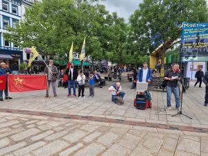 امروز جمعه ۲۷ ماه ژوئن آکسیون مشترکی از طرف شورای فعالین سوسیالیست و آزادیخواه هامبورگ و فعالین سازمان فدائیان اقلیت، حزب مارکسیست لنینیست آلمان و جریانات مائویست ترکیه در التونا (یکی از مناطق کارگری شهر هامبورگ) در افشای جنگافروزیهای دولتهای فاشیستی اسرائیل، ایران و آمریکا برگزار کردند. شرکتکنندگان این آکسیون در سخنرانیها و قطعنامهها علیه جنگی که دولتهای فاشیستی اسرائیل و آمریکا و ایران علیه مردم ایران و فلسطین به راه انداختهاند شدیداً محکوم کردند و حمایت و همبستگی بینالمللی خود را با مردم ایران و فلسطین ابراز داشتند.