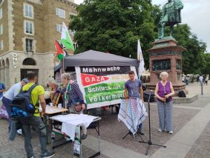 در ادامهٔ همبستگی و حمایت از مردم غزه، آکسیونی ۶ ساعته در روز جمعه ۲۵ ژوییه ۲۰۲۵ در اشتوتگارت – آلمان، به فراخوان اتحادیه بینالمللی (Internationalistisches Bündnis) و با مشارکت هواداران سازمان فدائیان (اقلیت) در اشتوتگارت برگزار گردید که مورد استقبال بسیاری قرار گرفت.