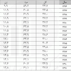 جدول شماره ۱ – نرخ مشارکت اقتصادی به تفکیک جنس (۱۳۹۱ – ۱۳۷۶)