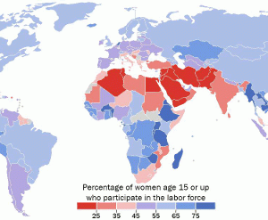 نقشه میزان اشتغال زنان ۱۵ سال به بالا در جهان