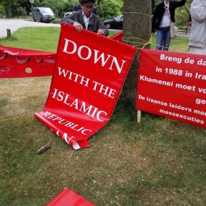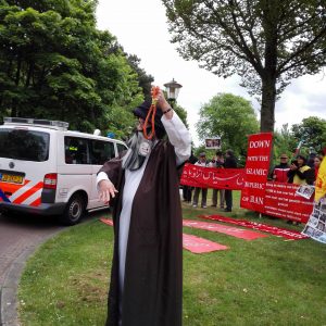 هم چنین در تجمعی که از ساعت ۳ بعدازظهر در برابر پارلمان هلند به همین مناسبت آغاز شد. تعدادی از نیروهای چپ و کمونیست و پناهندگان ضد رژیم حضور داشتند. چند تن از فعالین سازمان در هر دو تجمع حضور داشتند. شعارهایی در هر دو تجمع از سوی معترضان در این اکسیونها به نمایش انتخاباتی از جمله “رای ما سرنگونی است”،”نه جلاد، نه شیاد”، “مرگ بر چمهوری اسلامی” داده شد .